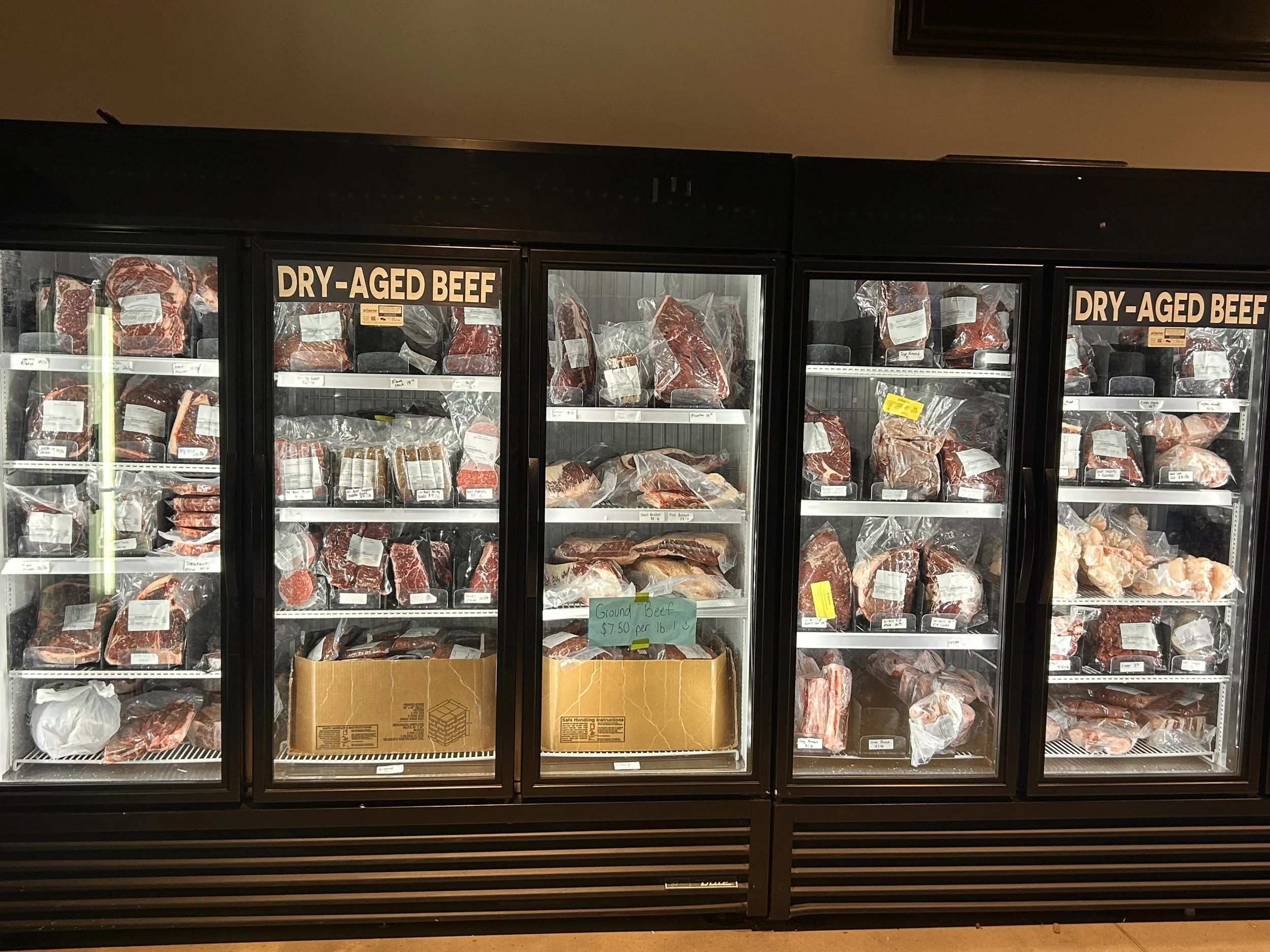 We are PACKED on beef and pork. Restocked beef from our 3hr away butcher.